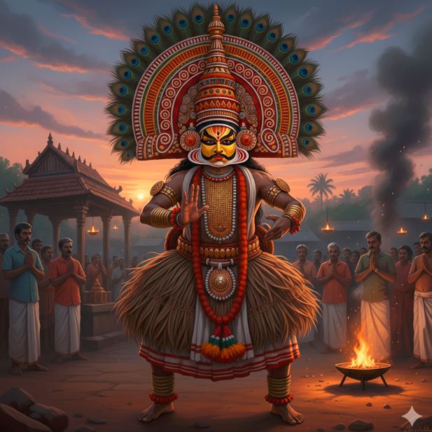 கேரளத்தில் தெய்யம் என்பது கடவுள் நேரடியாக வந்து வரம் தரும் ஆட்டமாக, கலையாகப் பார்க்கப்படுகின்றது. இதனை,