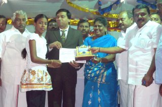 நெல்லையில் நடைபெற்ற மாநில அளவிலான சிலம்பாட்டப் போட்டியில் மூன்றாம் பரிசினைப் பெற்ற வந்தவாசி மாணவி மு.வெ.அன்புபாரதிக்கு நெல்லை மாநகராட்சி மேயர் விஜிலா சத்யானந்த் பாராட்டுச் சான்றிதழையும், நினைவுப் பரிசினையும் வழங்கியபோது எடுத்தபடம்.அருகில்,அகில இந்திய சிலம்பாட்டக் கழகத் தலைவர் டாக்டர் மு.ராஜேந்திரன், மாநிலச் சிலம்பாட்டக் கழகப் பொதுச் செயலாளர் ஆற்காடு கேசவன் ஆகியோர் உள்ளனர்.