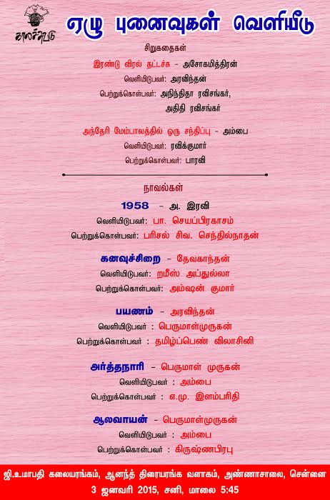 Pathivugal Online Magazine''s main aim is to share the creative works of Tamil writers with Tamils living in various countries. It operates on a not-for-profit basis. When writers submit their works—such as photographs or paintings—please send them only if you hold the copyright for those items. Spreading the Tamil language on the Internet is also a key objective of this online magazine. Please send your submissions to ngiri2704@rogers.com and editor@pathivukal.com.