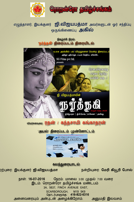 இடம்: ரொறன்ரோ தமிழ்ச்சங்க மண்டபம் |3A, 5637, Finch Avenue East, Scarborough, M1B 5k9