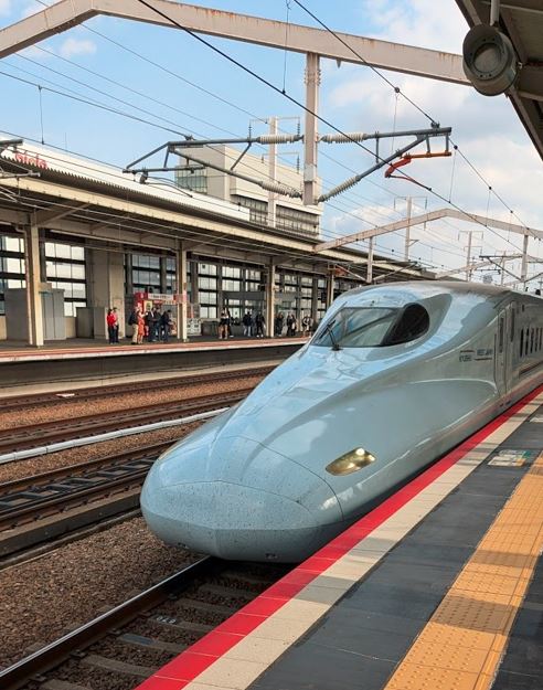மதியத்தில் நாங்கள் யப்பானில் உள்ள புல்லெட் ரயிலில் அரைமணி நேரம் பயணம் செய்ய முடிந்தது. நாங்கள் இருக்கைகளைத் தேடிப் பிடித்து அமர்த்த சில நிமிடங்களில் இறங்குமிடம் வந்துவிட்டது. 280 கிலோ மீட்டர் வேகத்தில் பயணிக்கும் இந்த ரயில் போவது தெரியவில்லை. அதாவது இதில் போகும்போது வெளிப்புறக் காட்சிகள் அனுபவிக்க முடியாது .