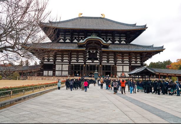 இந்த கோவிலே உலகத்தில் மரத்தாலான பெரிய கோவில் எனக் கருதப்பட்டு யுனெஸ்கோவால் பாதுகாக்கப்படுகிறது. பல முறை அழிந்து புதிப்பிக்கப்பட்ட போதும், பழமையான வடிவம் பேணப்படுகிறது. உள்ளே மிகப் பெரிய வெண்கலப் புத்தர் சிலை உண்டு . இது கவுதம புத்தரல்ல. மகாஞான பௌத்தத்தில் வந்த சூரிய புத்தர் (Vairocana) எனலாம் – அவரும் பல காலத்துக்கு முன்பு முக்தியடைந்த போதிசத்துவர் எனலாம். பிற்காலத்தில் யப்பானில் அமிடா புத்தர் முக்கியத்துவம் பெறுகிறார் .