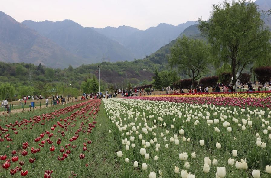 இங்குள்ள இந்திரா காந்தி நினைவுத் ட்யூலிப் பூங்கா, நாங்கள் சென்ற வேளையில் பல வண்ண மலர்களால் குலுங்கிக் கொண்டிருந்தது. இது ஆசியாவின் மிகப் பெரியதாகும். கடந்த ஆண்டு நெதர்லாந்து சென்றபோது, மகரந்த ஒவ்வாமையால், ட்யூலிப் பூந்தோட்டங்களுக்கு செல்லத் தவிர்த்தேன். ஆனால் இங்கு சென்றுவந்தேன். இரு பூங்காக்களும் அருகருகே இருப்பதால் எங்களுக்கு வசதியாக இருந்தது.