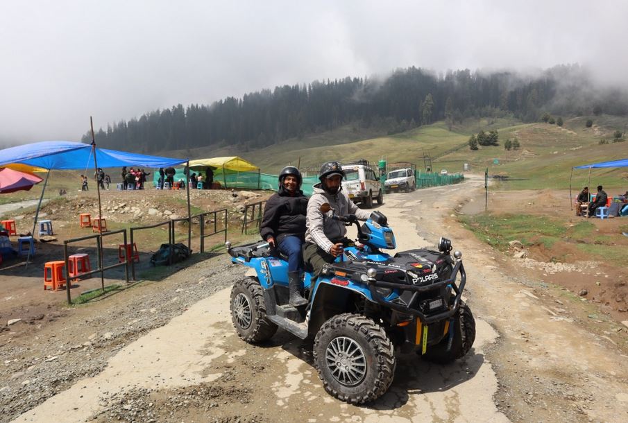 மூன்றாம் நாள், கடல் மட்டத்திலிருந்து 8,200 அடி உயரத்தில் உள்ள பிரபல பனிசறுக்கு மையமான “குல்மார்க்” (Gulmarg) சென்றோம். அங்கு பனி இல்லாதிருந்தாலும், மலைச் சிகரங்கள் வரை கேபிள் கார் செல்கிறது. ஆனால் அதற்கான முன்பதிவு பல நாட்களுக்கு முன்பே செய்ய வேண்டும். ஏற்கனவே கனடா, சுவிட்சர்லாந்து, நியூசிலாந்து போன்ற நாடுகளில் பலமுறை கேபிள் காரில் சென்றிருந்ததால், நாங்கள் நான்கு சக்கர மோட்டார் சைக்கிள் (Polaris quad bike) பயணத்தைத் தேர்ந்தெடுத்தோம். அந்தப் பகுதியில் ஏராளமான இந்திய இராணுவ முகாம்களும் இருந்தன.