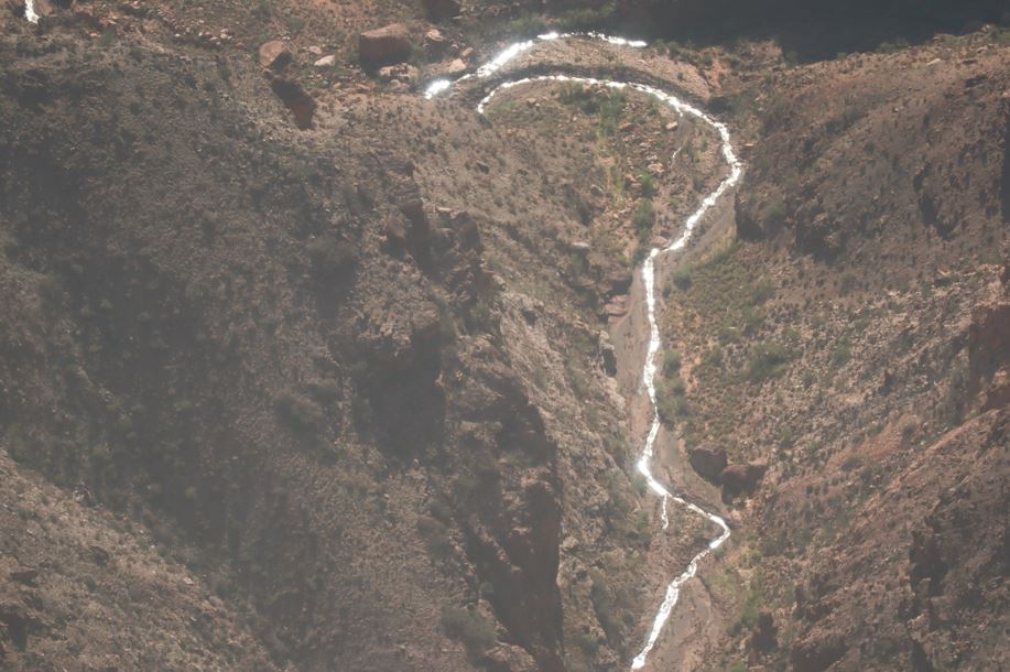 அதிசயமான நில அமைப்பு, பல நிறங்களிலான கற்பாறைகளின் மேல் பாய்ந்து,  தழுவி,  உராய்ந்து தேர்ந்த சிற்பியைப் போல ஆறு மில்லியன் ஆண்டுகள் அமைதியாக செதுக்கி உருவாக்கிய கொலராடோ நதி, இப்போது சிறு வயதில் நான் கட்டியிருந்த வெள்ளி அரை  நார்க்கொடி போல் ஹெலிகாப்டரில் இருந்து பார்க்க தெளிவாக தெரிந்தது.